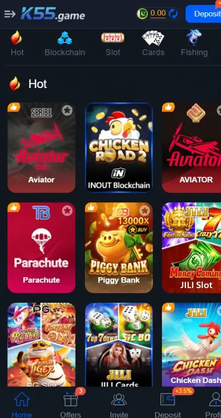 K55 uses a mobile-first design that is simple and easy to understand. Menus, buttons, and controls are touch-friendly and clearly visible on smartphone screens. Navigation is smooth, so new users can quickly find games and options without confusion. A clean and responsive interface helps improve user experience and keeps players engaged longer.